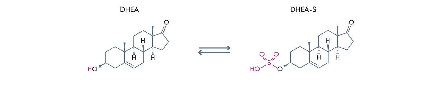 DHEA (dehydroepiandrosterone) is a steroid hormone produced largely by the adrenal glands. Most of the DHEA in the bloodstream circulates in the form of a derivative, DHEA sulfate or DHEA-S. The intestines also convert DHEA supplements into DHEAS before the hormone enters the blood. In our bodies, DHEA converts it to a wide array of androgens and estrogens, including the hormones testosterone and estradiol.